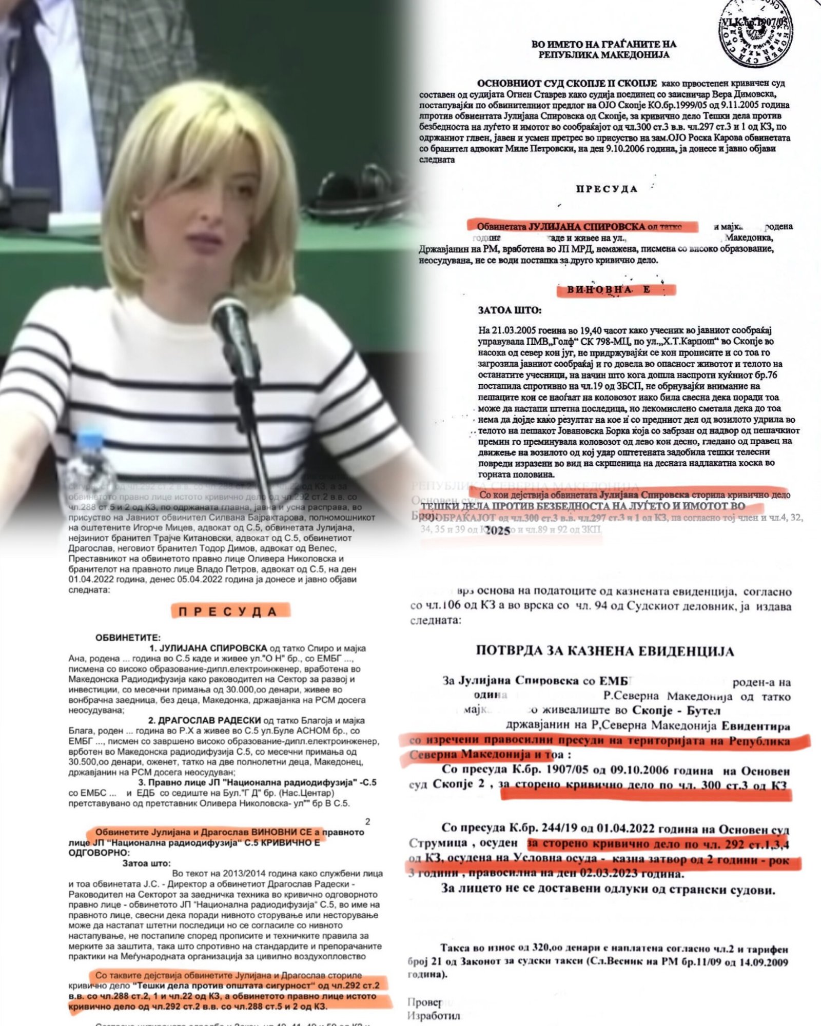 Градоначалничката на Град Скопје, Данела Арсовска, на својот Фејсбук-профил објави дека Јулијана Спировска, претседателка на Управниот одбор на „Комунална хигиена“, е осудена за две тешки кривични дела и е поставена на позиција од ВМРО.