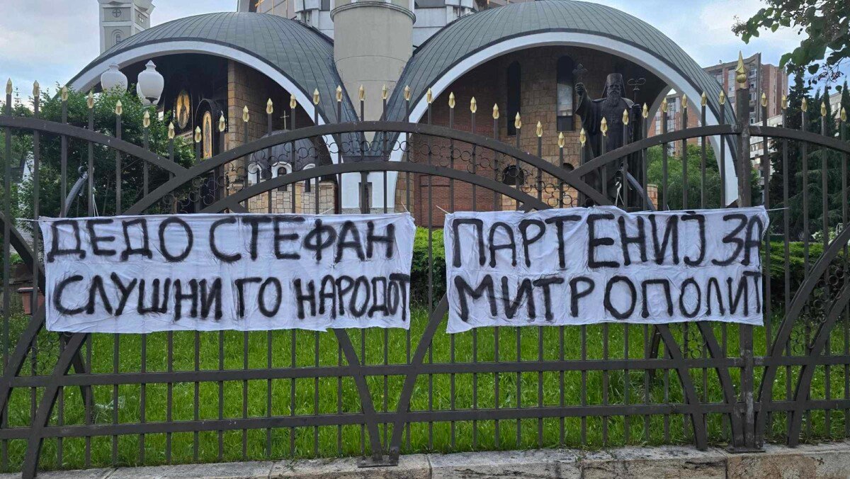 На оградата пред Соборниот храм „Св. Климент Охридски“ во Скопје денеска беше поставен транспарент со пораката: „Дедо Стефан, слушни го народот – Партениј за митрополит“. Оваа јавна реакција доаѓа во пресрет на најавениот избор на нов митрополит на Дебарско-кичевската епархија, што го подгреа незадоволството кај дел од верниците.
