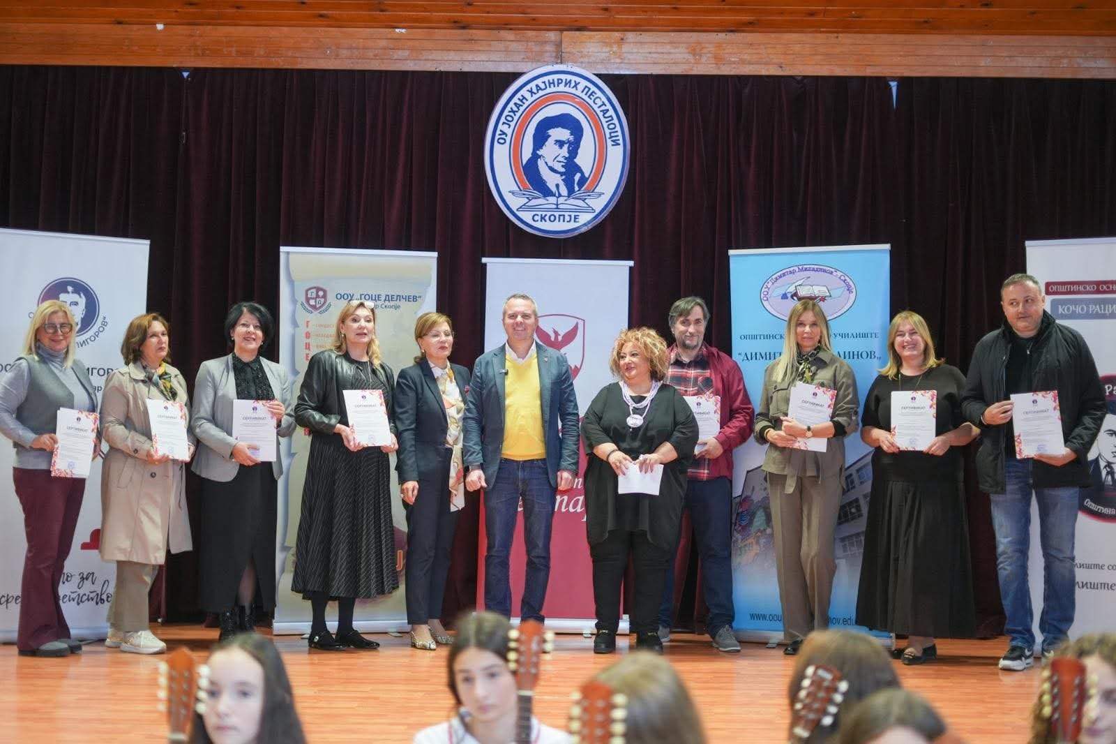 Кандидатот за градоначалник на Општина Центар од СДСМ, Горан Герасимовски, денеска им додели сертификати на наставниците, стручните соработници и директорите кои успешно ја завршија обуката на тема „Улогата на наставниците и стручните соработници во пренесување на вредностите и моралните норми кај младите“.