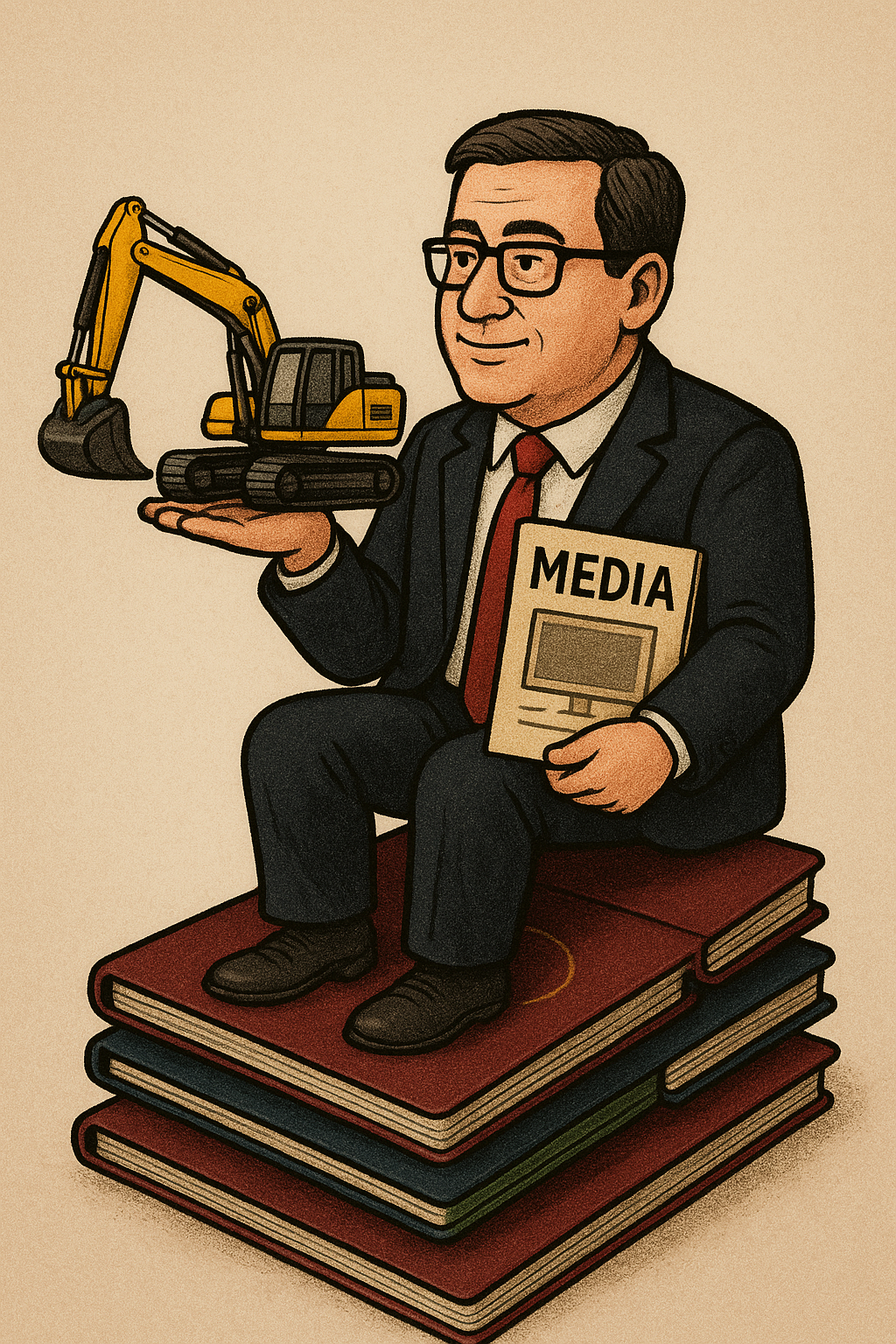 Велат дека за да успееш, треба да бидеш на сите фронтови. Нашиот човек го сфатил тоа буквално. Од градежни машини, преку началник на цела држава, до менаџер на медиумски кампањи. Како парите да му се лепат, а обврските да му се лизгаат. Сериозен, амбициозен, посветен на каузата… кога тоа му одговара.
