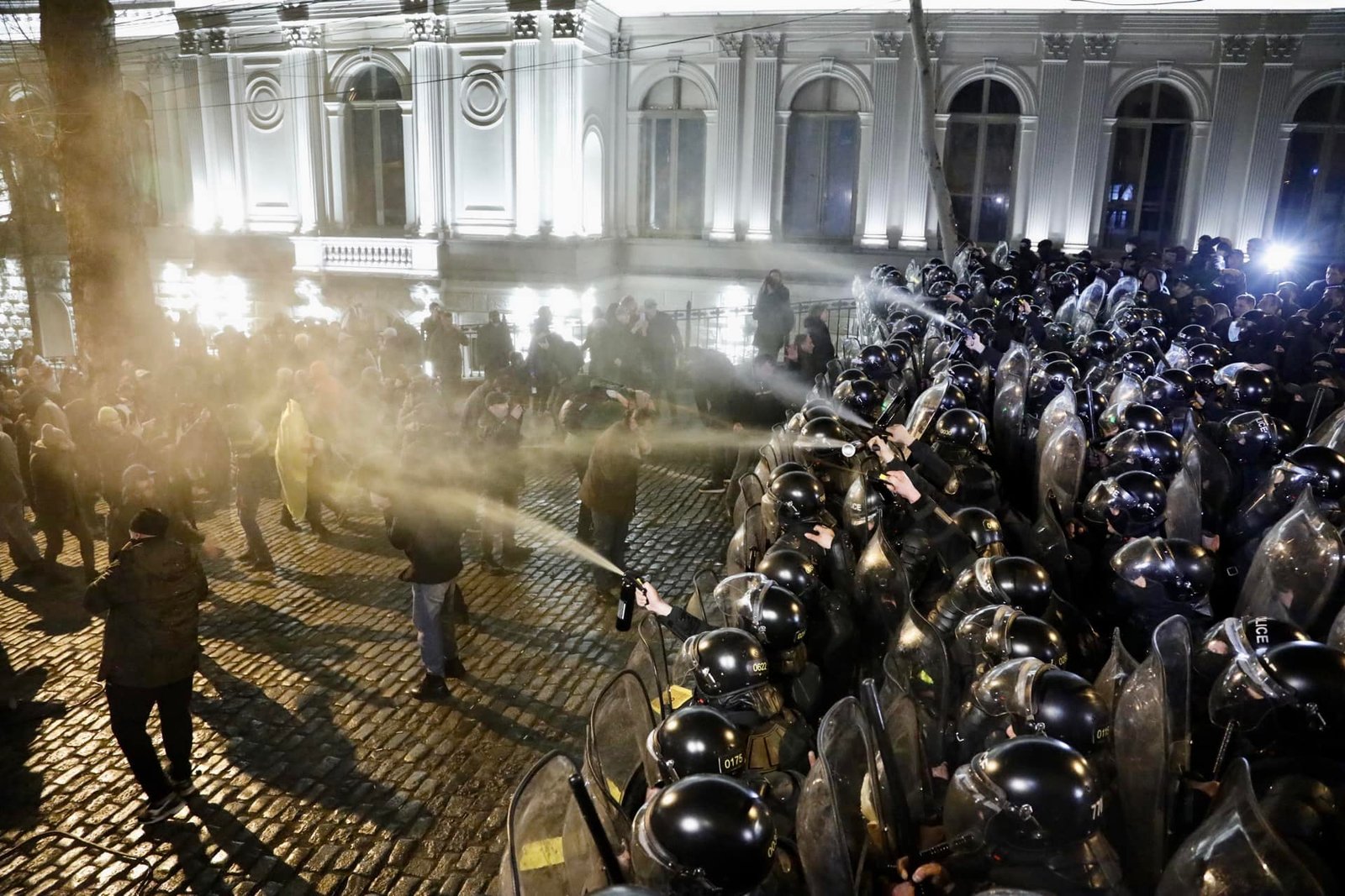 Антивладини демонстранти во Тбилиси пробија метални огради и упаднаа во дворот на претседателската резиденција доцна вечерта на денот на локалните избори во Грузија. Според локалните медиуми, специјалните сили употребија бибер-спреј за да ја растераат толпата.