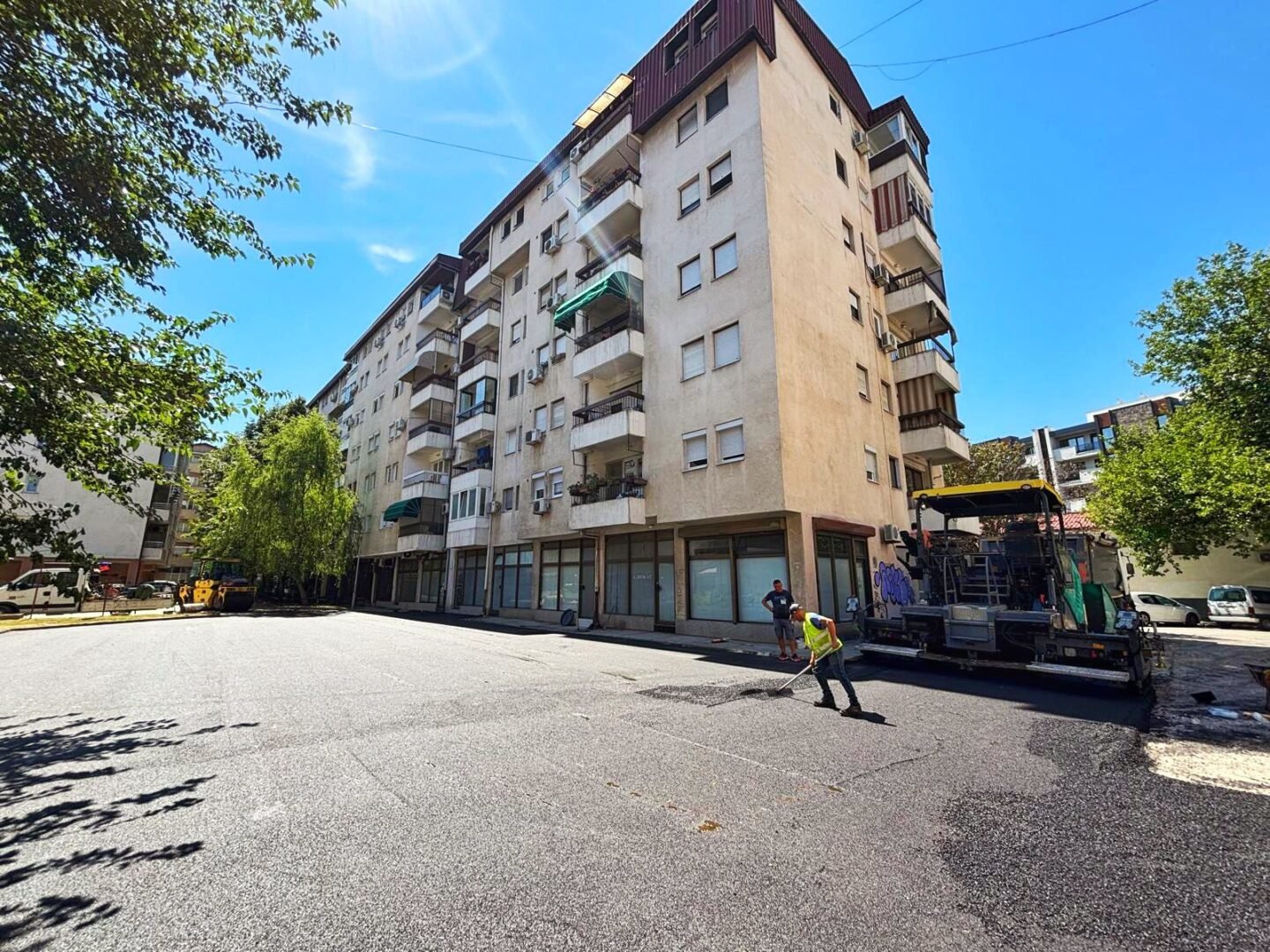 Во тек е асфалтирање и уредување на паркингот со површина од 550 квадратни метри. По завршувањето на градежните работи, следува обележување на паркинг-местата, со што просторот ќе биде целосно подготвен за користење.