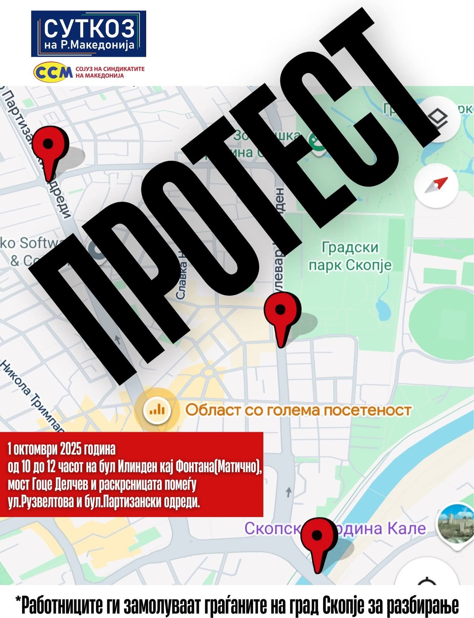​Протестот ќе се одржи од 10:00 до 12:00 часот на три локации во градот: