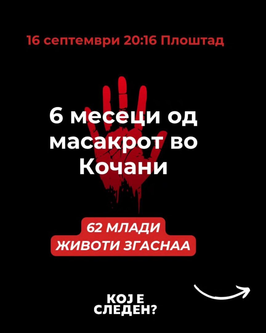 Семејствата на загинатите веќе шест месеци секоја сабота организираат „Марш на ангелите“ во Кочани, барајќи одговорност и правда.