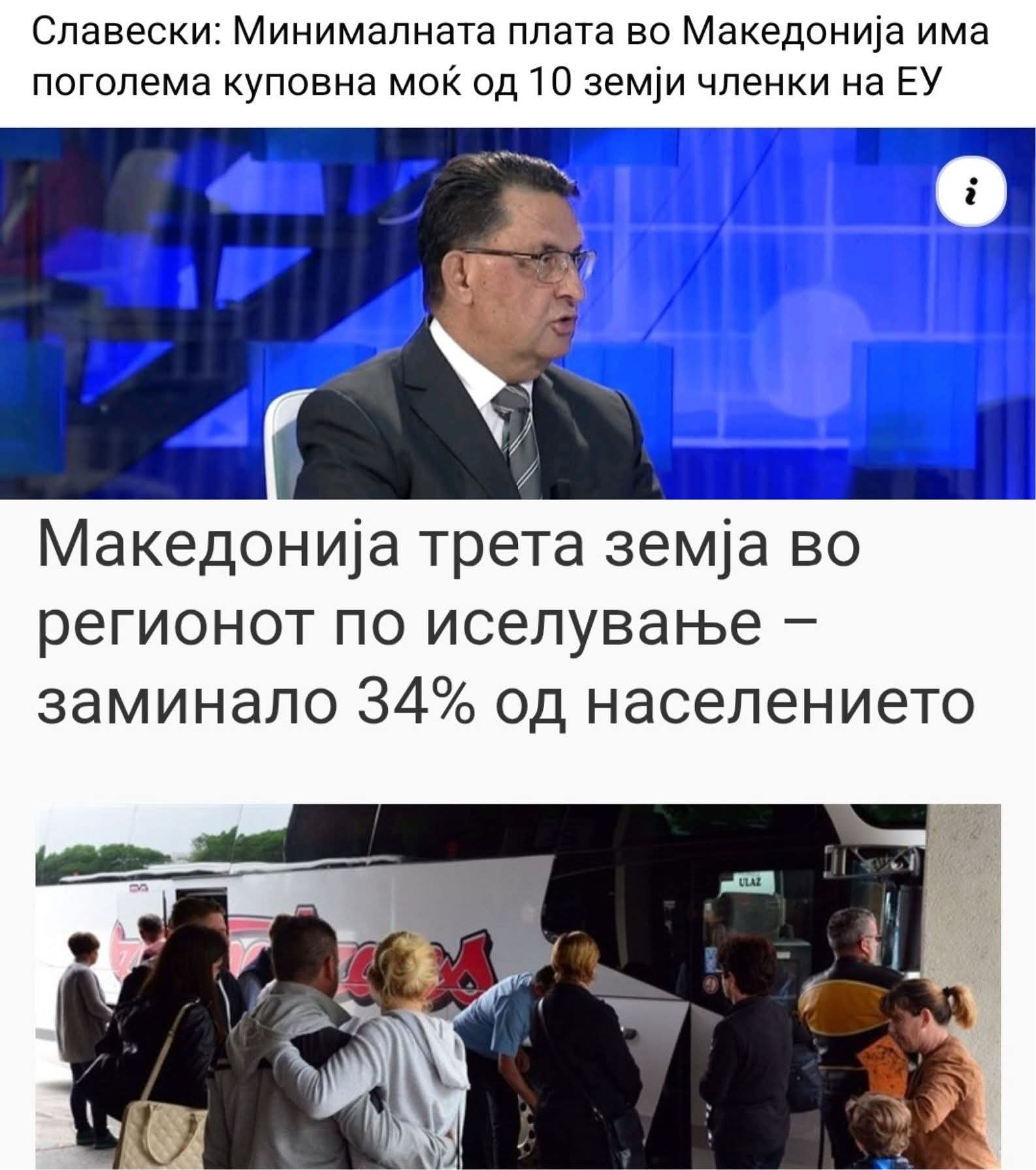 34 % од населението кое ја напуштило Македонија, а од кои најголем дел квалификувани работници, не заминало затоа што имало добра куповна моќ, туку затоа што не можело да си дозволат и да ги купи и најосновните прехранбени продукти!