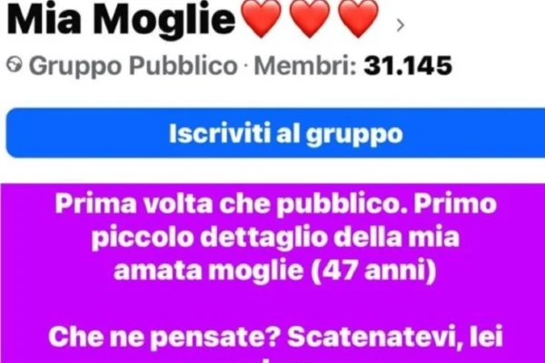 Италијанската јавност е шокирана по откривањето на групата „Моја жена“ (Mia Moglie) на Фејсбук, која имаше околу 32.000 членови и во која се споделувале интимни фотографии од жени, честопати снимени без нивно знаење. Групата е отстранета од „Мета“, матичната компанија на Фејсбук, поради кршење на нивните политики за сексуална експлоатација. „Виртуелно силување“ и културно насилство…