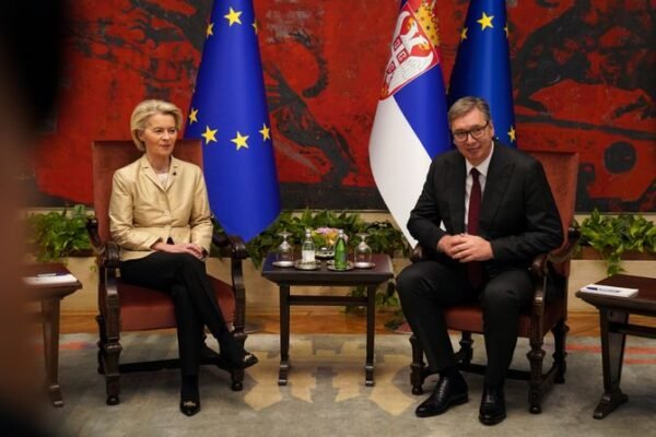 Претседателката на Европската Унија, Урсула фон дер Лајен, денес во Белград изјави дека очекува Србија да се движи двојно побрзо на патот кон Европската Унија. Таа нагласи дека изборот на Србија за ЕУ пред две децении е „желба на народот на Србија од срце“, а не само стратешки избор. ​На заедничката прес-конференција со српскиот претседател,…